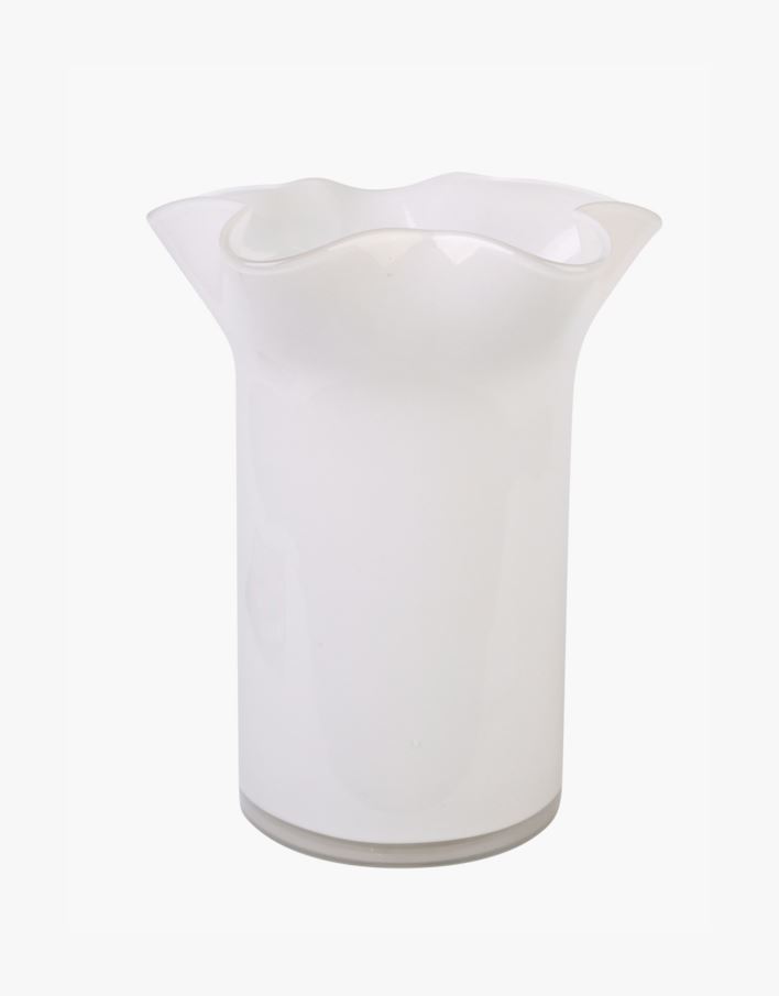 Efektse lainelise servaga klaasist vaas, mis sobib erinevatesse interjööridesse. Kaunis sisustusaksessuaar iseseisvalt või koos lilleseadega.